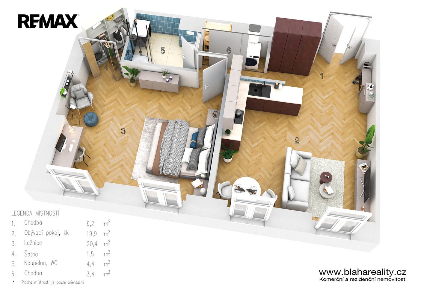 Kč 34 500/měsíc, min. 2 ložnice