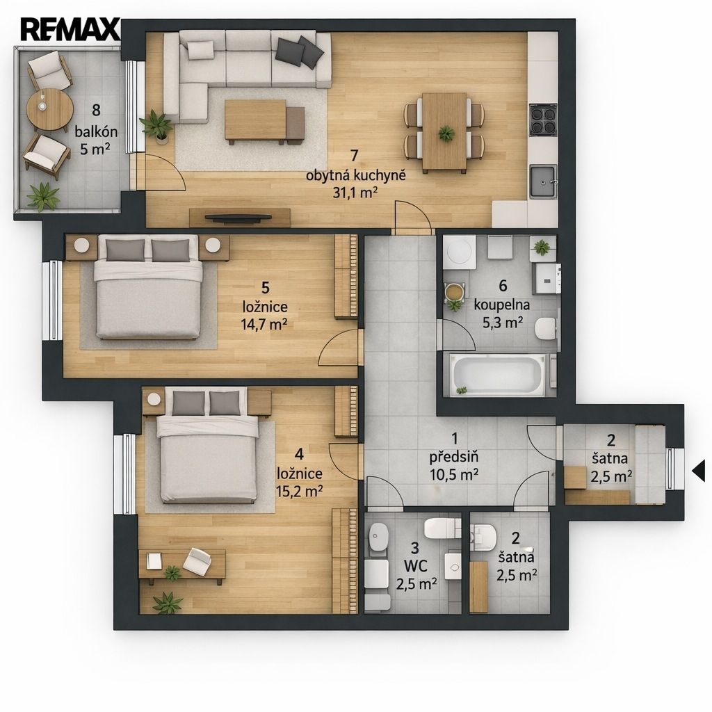 Kč 34 500/měsíc, min. 3 ložnice