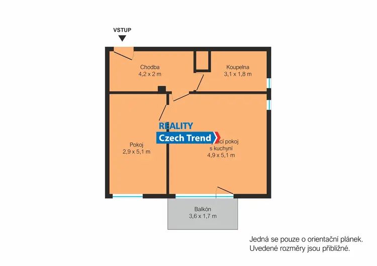 Kč 17 000,00/місяць, мін. 2 спальні